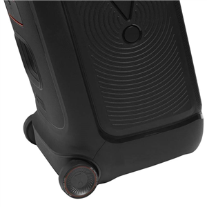 بدنه مقاوم و طراحی چمدانی با چرخ و دسته جمعشونده باعث میشود حمل و جابهجایی این اسپیکر 25.5 کیلوگرمی بسیار آسان باشد. همچنین نورپردازی RGB هماهنگ با موسیقی جلوهای ویژه به مهمانیها و دورهمیهای شما میبخشد.